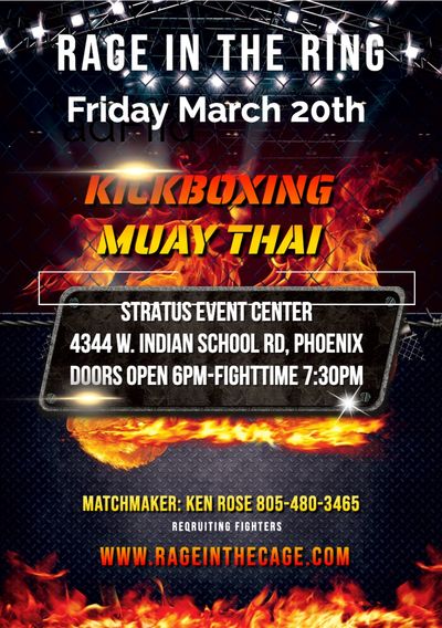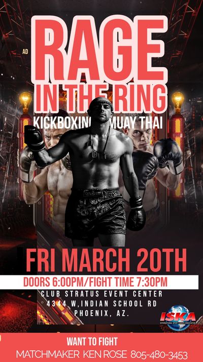 Rage in the Cage, founded in 1998 by Roland Sarria in Arizona, is one of the longest-running MMA promotions in history. Showcasing MMA, Kickboxing, and Muay Thai, the promotion has provided a competitive platform for fighters while delivering action-packed events for fans for over two decades. Rage in the Cage continues to support the growth of combat sports through authentic matchups and community-driven fight experiences.